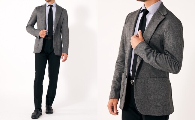 ジャージーのストレッチ性とスーツとしての見た目を兼ね備えたビジネスウェアの新定番