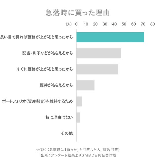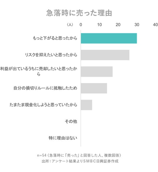 ・「資産を売った」と答えた方にその理由をお聞きしたところ、「もっと下がると思ったから」がトップ