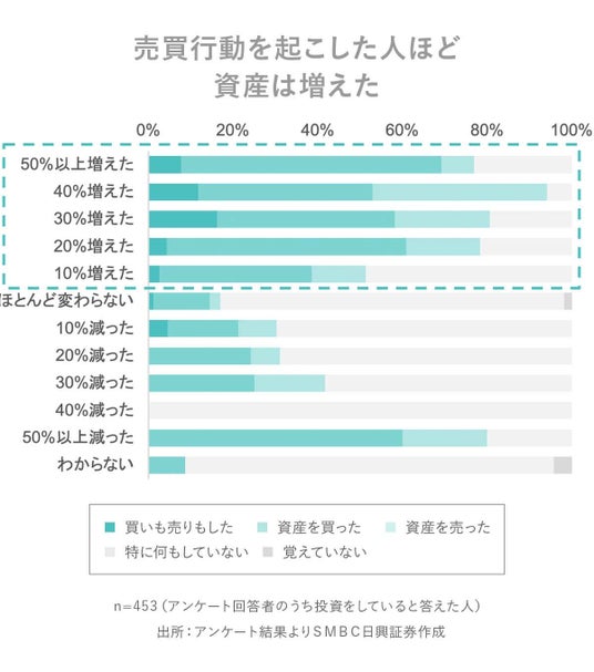 ・急落時に売買行動を起こした人ほど、資産が増えていた