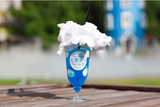 真夏の青い空をブルーハワイ、白い雲をマシュマロで表現した爽やかなソーダ。さらにカップの上には、空に浮かぶ雲海をイメージしたコットンキャンディー(綿菓子)が浮かびます。青と白のコントラストがムーミンバレーパークの自然とマッチして、思わず写真を撮りたくなる一杯!