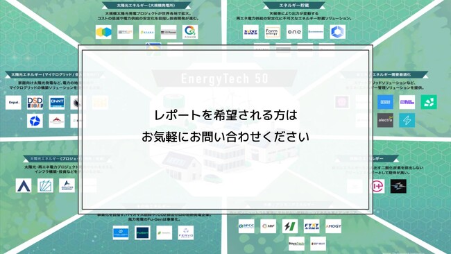 イシン株式会社(本社:東京都新宿区 代表取締役社長:片岡 聡)は、「エネルギー」の分野における注目スタートアップや、その資金調達動向をまとめた「エネルギーテック50」レポートをリリースいたしました。