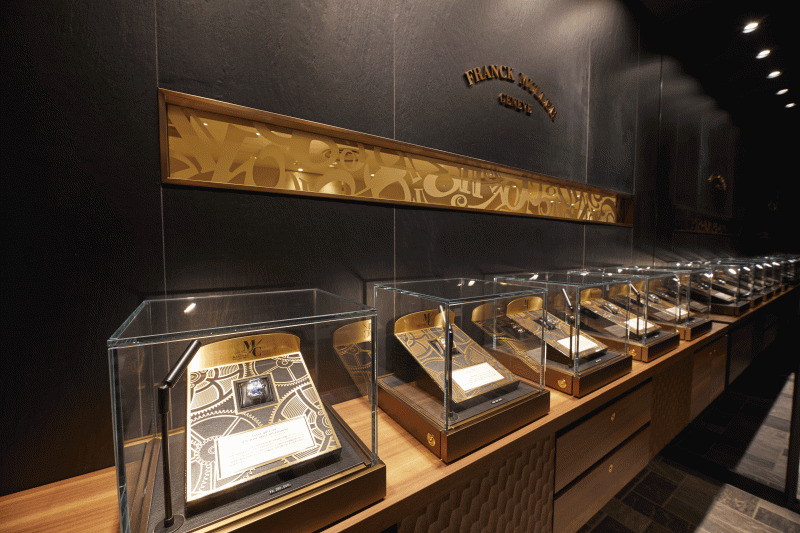 重厚感あふれる贅沢な空間には、数本しか作られていない世界的にも貴重なフランク ミュラーのマスターピースが特別に展示され、その美しさと複雑な機能をじっくりとご堪能いただけます。また、お客様の好みに合わせて腕時計の針やストラップをカスタムできる、パーソナルカスタマイズサービスもご用意しております。