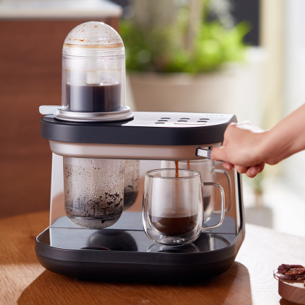 サイフォン式コーヒーの抽出の自動化を実現した、見た目も味わいも楽しめる新たなコーヒーメーカーです。