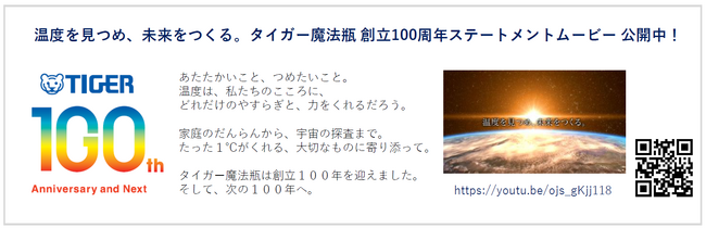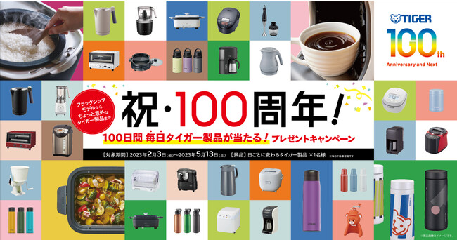 熱制御テクノロジーで世界をリードするタイガー魔法瓶株式会社(社長:菊池嘉聡、本社:大阪府門真市)は、 2023年2月3日に創立100周年を迎えました。当社は1923年に国内向けに「虎印魔法瓶」を発売して以来、「真空断熱技術」と「熱コントロール技術」を基軸とした「高次元の熱制御テクノロジー」を結集したものづくりを掲げてまいりました。この度、100周年という歴史的なタイミングで、タイガーの歴史と今、未来をつなぎ、長年培ってきた技術と知見を活かし、皆さまの「幸せ」を実現する商品のラインアップを「100周年記念モデル」として発売してまいります。