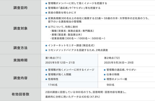 本研究の結果が、今後の管理職支援やチームマネジメントのあり方を検討する上での基礎的な知見となれば幸いです。