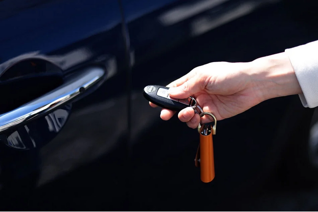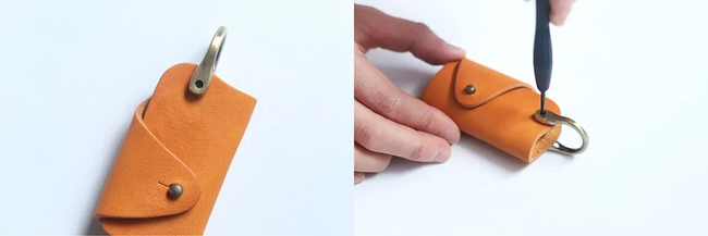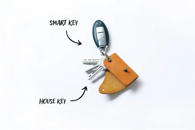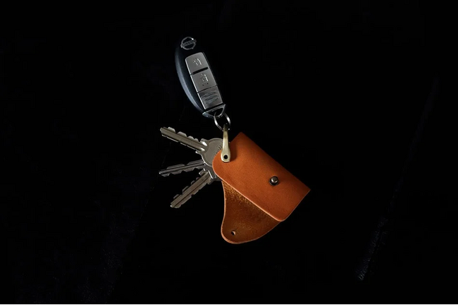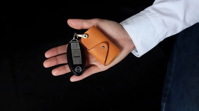 車のスマートキーと家の鍵を取り付けることができる革のコンパクトなスマートキーケース。 小さな女性の手にもすっぽり収まり13g(約ボールペン1本分)と超軽量につくられました。