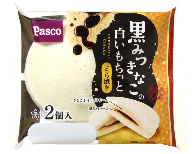 もちっとした食感の白いどら焼きに、口どけのよい黒みつソースと、香ばしいきなこホイップクリームをはさみました。
