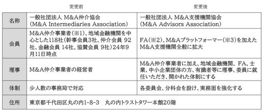 M&A仲介業自主規制団体である一般社団法人M&A仲介協会(以下、当協会/所在地:東京都千代田区/代表理事:荒井 邦彦/URL:https://www.ma-chukai.or.jp/)は、2025年1月1日より、「一般社団法人M&A支援機関協会」に団体名を変更します。あわせて体制を変更し、悪質な譲受け事業者撲滅への取り組みをはじめ、業界健全化に向けた動きを加速させます。