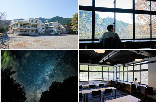 首都圏近郊の「巨樹と清流のまち 奥多摩」の旧中学校の校舎をリノベーションし活用した学び舎でワーケーション体験。普段と異なる環境での非日常体験は刺激とヒラメキをもたらし、新たな発見と出会いを加速します。