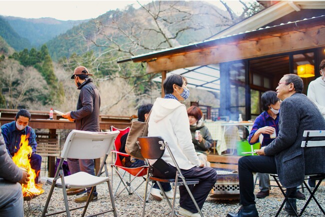 東京山間地域の100年先の未来を見据え、挑戦を続ける民間事業者と参加メンバーとの多彩な交流を実施。新しいコトが生まれる「きっかけ」作りをローカルから、双方向に繋がり刺激しあえる関係構築を目的とした場を提供します。自然に囲まれた空間で焚火の癒し効果を通じて心身のリフレュシュ効果も体験できます。