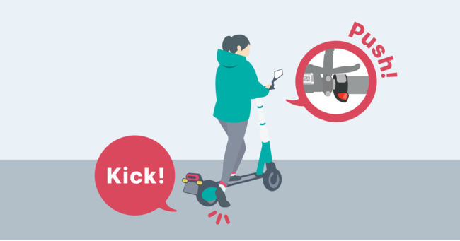 6. スマートロックが解錠されたら、電動キックボードから音がでて速度表示の液晶がつきます。安全にライドをお楽しみください。