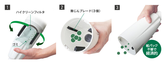 濾布製のハイクリーンフィルタを採用することで、不織布フィルタ※3に比べて細かいゴミの捕集に対応できます。
