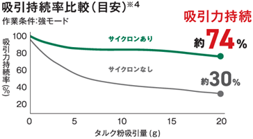 ※4 試験用粉じん(タルク粉20g)を吸引した試験結果。あらゆる粉じん、ウイルス菌などの捕集を保証するものではありません。数値は参考値です。材料や条件により異なります。