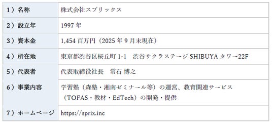 スプリックスは、1997年に新潟県長岡市で創業した総合教育カンパニーです。「教育で人生を新しく」をミッションに掲げ、日本最大級の個別指導塾「森塾」の学習塾事業などを通じ、一人ひとりの人生に新たなステージ(春)を提供しています。様々な事業で培ったノウハウとテクノロジーを融合させ、世界中のお客様に春を届け、「教育で世界No.1へ」というビジョンの実現を目指しています。