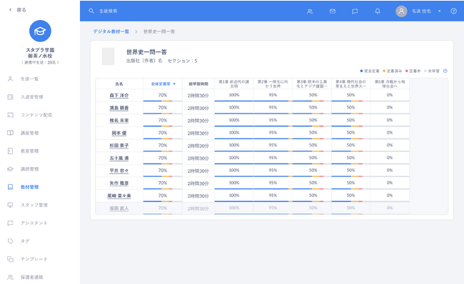 機能2.配信したデジタル教材の学習進捗を確認