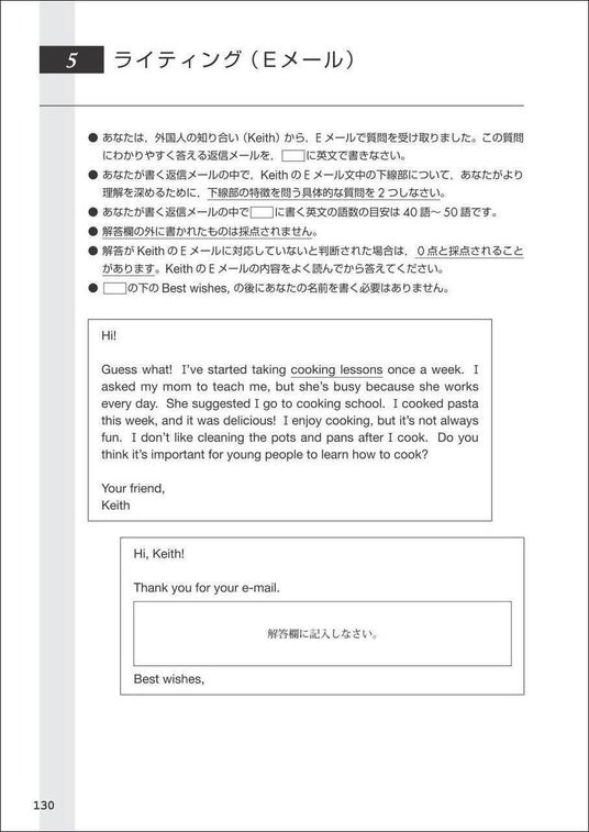 2024年度から、準2級、3級はライティングに「Eメール問題」が加わり、1問から2問になりました。
