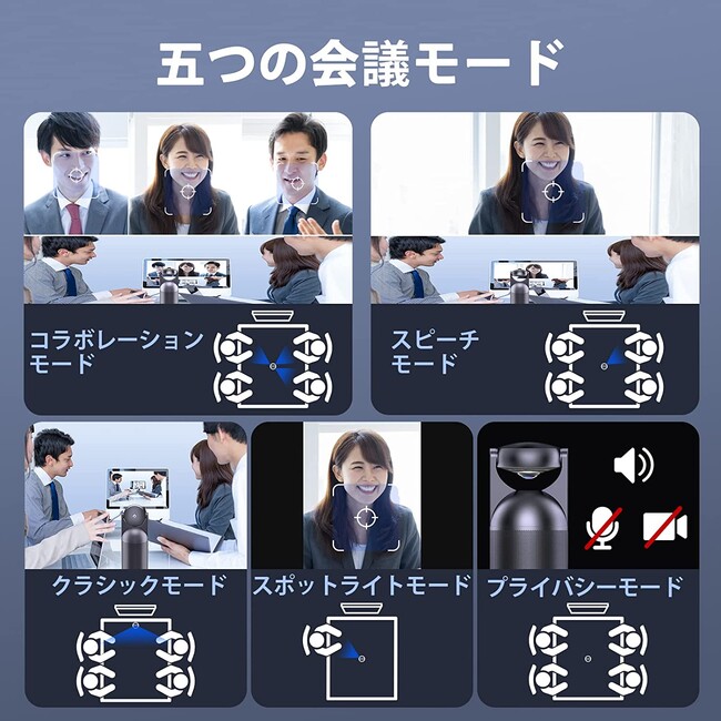 【5種類の会議モード&レンズ自動反転】