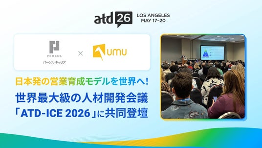 パフォーマンス向上を支援するAI活用学習プラットフォーム「UMU(ユーム)」を展開するユームテクノロジージャパン株式会社(本社:東京都新宿区、代表取締役:松田 しゅう平、以下 ユームテクノロジージャパン)は、パーソルキャリア株式会社(本社:東京都港区、代表取締役社長:瀬野尾 裕、以下 パーソルキャリア)とともに、2026年5月に米国・カリフォルニア州で開催される世界最大級の人材開発カンファレンス「ATD International Conference & Exposition 2026(以下、ATD-ICE 2026)」のスピーカーとして選出されたことをお知らせします。