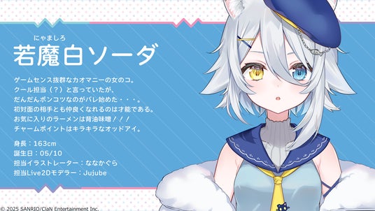 株式会社ClaN Entertainment(本社:東京都港区 代表取締役社長:大井 基行、以下ClaN)は、株式会社サンリオ(本社:東京都品川区)と共同で行うVTuberプロジェクト「にゃんたじあ!」に所属する「若魔白ソーダ」が5月10日に誕生日を迎えることを記念し、誕生日グッズの販売を行います。