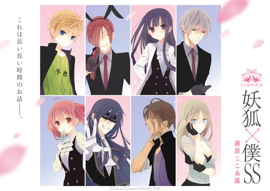 展覧会では、作品生誕15周年を迎える「妖狐×僕SS」をメインに、藤原ここあ先生の作品を展示いたします。