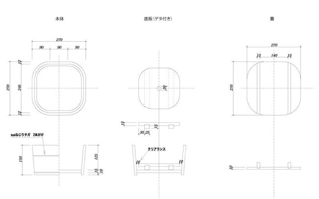 特注〈角丸型氷桶〉限定販売◎蓋/ゲタ付き底板付属