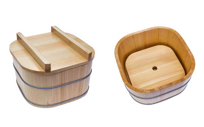 本品は、すし桶やおひつと違い「氷桶」としての用途で製造されているため防水性に優れています。また四角い形状のため、一般的な「丸型」の桶に比べ、製造に多くの手間と高い技術が求められます。そのため多くの数量をつくることが出来ません。今回も20個限りの販売となり、品切れとなった場合の増産は未定です。
