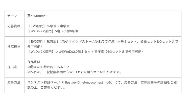 「第5回 EV3 & WeDo2.0動画コンテスト」作品募集中