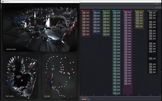 ワントゥーテンとオーディオビジュアルアーティストのJUNICHI AKAGAWAとの共創により、100台近くの照明灯体を制御し、ただ音楽に合わせるのではなく、「音が持つ様々な情報を抽出し、音と照明や映像が密にシンクロする空間演出」を実現しました。