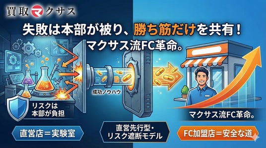 家具・家電・ブランド品・ブランド古着・シューズ・お酒・毛皮等のリユース事業を行うマクサス(本社: 東京都品川区東五反田1-9-2ダイヤパレス五反田1F)は、フランチャイズ(FC)加盟店の事業継続率向上を目的として、直営店を「実験室(ラボ)」と位置づけ、新規施策のリスクを本部のみが負う「直営先行型・リスク遮断モデル」を経営戦略の中核に据えることを発表いたしました。