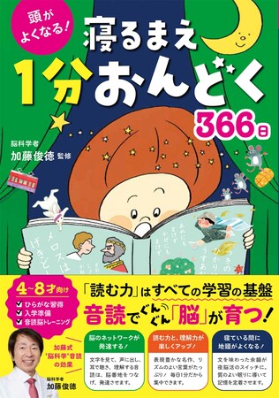 目で文字を見て、口を動かして声に出し、耳で聴きながら理解するという作業をくり返す音読は、脳の発達に大きな効果があります。そんな音読の効果に注目し、2021年3月に発売されたのが『頭がよくなる! 寝るまえ1分おんどく366日』です。