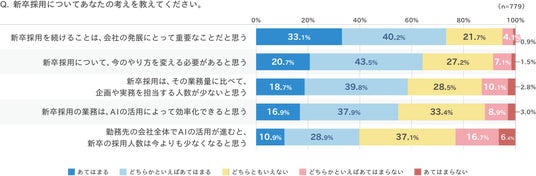 新卒採用は企業成長に重要と認識される一方、採用方法の見直しやAI活用の動きも