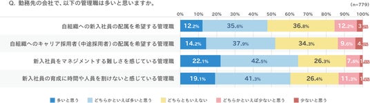 さらに、新卒採用の現場では受け入れ側の課題も浮かび上がっています。新入社員の育成に時間や人員を十分に割けないと感じている管理職は約3分の2、新入社員のマネジメントに難しさを感じている管理職は約6割にのぼり、採用後の育成やマネジメントの負担が高まっている可能性が示されました。