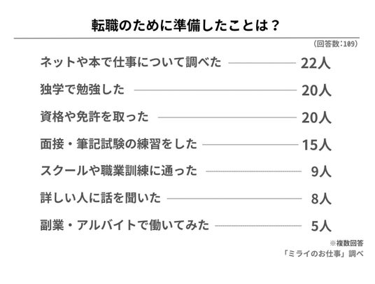 転職が「成功」と答えた109人に、転職前に準備したことを聞いてみました。