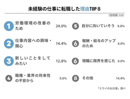 未経験の仕事に転職した理由1位は「労働環境の改善」