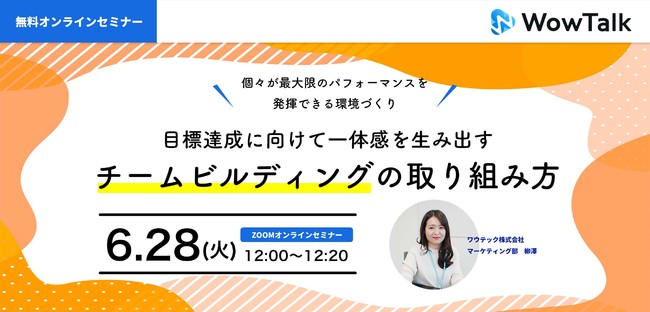利用社数10,000社超と多くのビジネスパーソンにご利用いただいているサービス、ビジネスチャット・社内SNS「WowTalk(ワウトーク)」を開発・提供するワウテック株式会社(本社:東京都港区、 代表取締役社長:瀬沼 悠、以下「ワウテック」)は、2022年6月28日(水)、無料のオンラインセミナーを開催することをお知らせいたします。