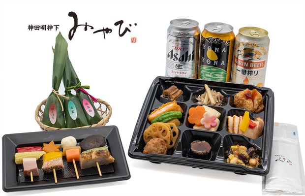 神田明神下に江戸前料理の本店を構える「神田明神下みやび」。みやびオリジナルの和風ピンチョス4本や、豪華な江戸の味アラカルト9品は見て美しい、食べておいしい一品です。〆にはみやび定番商品の笹の葉一枚で包んだ一口サイズの笹一葉寿司が楽しめます。
