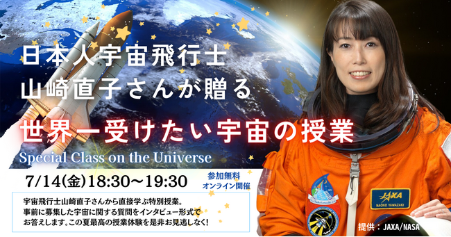そこで、こどハピでは宇宙をもっと知りたい、学びたいという子ども達に向けて、山崎直子さんを講師に迎え、スペシャル授業を7月14日(金)に開催いたします。
