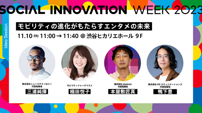 当セッションでは、モビリティジャーナリスト楠田悦子氏、XRの開発コンサルティングを手がける株式会社playknot代表取締役 本屋敷匠真氏とともに、「モビリティの進化がもたらすエンタメの未来」をテーマにディスカッションを行います。