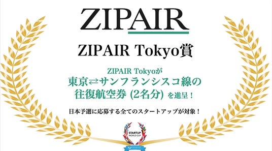 ZIPAIR Tokyo賞JALグループの国際線LCCであり、若者や起業家層から支持を集める株式会社ZIPAIR Tokyo(以下、ZIPAIR)より、「ZIPAIR Tokyo賞」として、名古屋・東京・九州予選のチャンピオンスタートアップに対して、11月にサンフランシスコで開催される世界決勝戦に参加する際に利用可能な、東京~サンフランシスコ間の往復航空券(2名分)を提供。