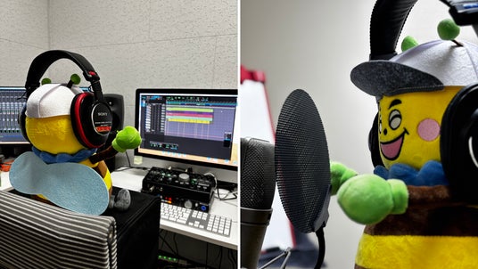 マスコットキャラクターも見守る、一体感あふれるレコーディング