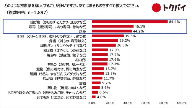 人気のお惣菜TOP3は「揚げ物」「寿司」「刺身」