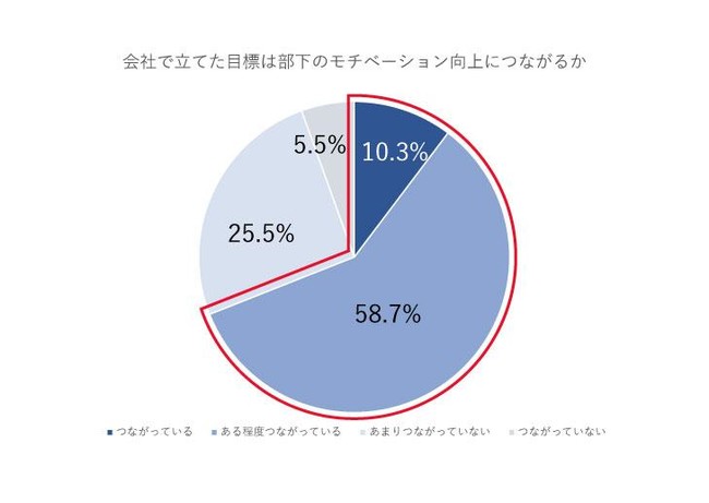 上のグラフは、約600人の管理職に聞いた、会社で立てた目標は部下のモチベーション向上につながるかというグラフです。
