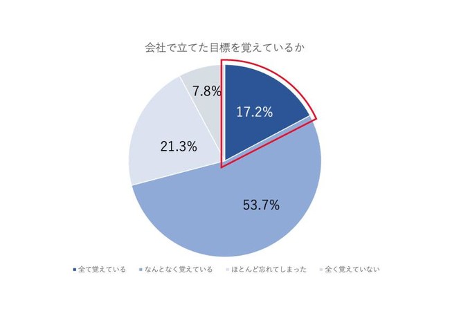 先ほどの現状の一方で、対象である部下の中で目標をはっきりと覚えているの僅か17%程、ほとんどが聞かれても答えることができないという結果が出ています。