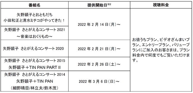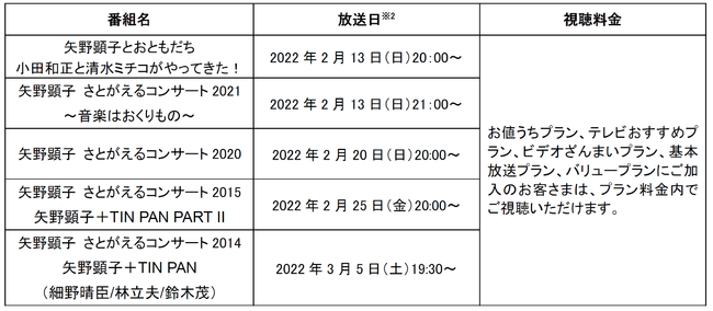 株式会社NTTぷらら(本社:東京都豊島区、代表取締役社長:永田勝美、以下NTTぷらら)および株式会社アイキャスト(本社:東京都豊島区、代表取締役社長:永田勝美、以下アイキャスト)は、矢野顕子デビュー45周年記念番組「矢野顕子とおともだち 小田和正と清水ミチコがやってきた!」を制作し、両社が運営する映像配信サービス「ひかりTV」のテレビサービスにおいて2022年2月13日(日)に独占で放送することを決定しました。なお、翌日14日よりビデオサービス(VOD)でも提供します。
