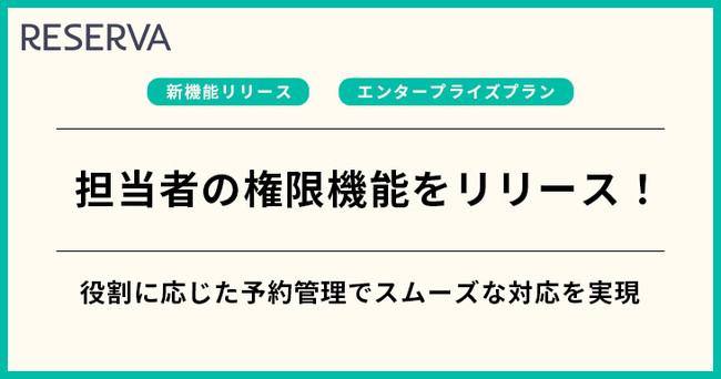 株式会社コントロールテクノロジーは、美容サロン、宿泊施設、イベントやセミナーなど350以上の業種に対応した国内最大級のSaaS型予約管理システム「RESERVA」を提供しています。この度、新機能として「担当者権限」をリリースしました。本機能により、サービス提供タイプ(スタッフ指名あり)で担当者権限の選択が可能になり、権限が付与された担当者は、予約管理ができるようになります。