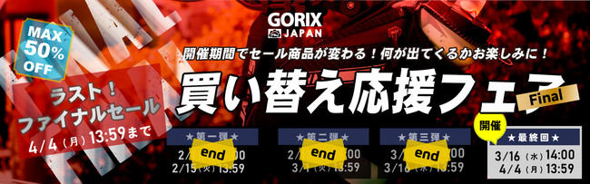 GORIXの公式オンラインストアで、3/16(水)14:00~~4/4(月)13:59まで第4弾の買い替え応援セールを開催します。