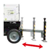 手で押して移動ができるため、設置場所の自由度が高く、さらに、キャスター付きで、小回りが利きます。転倒防止のためにジャッキ式のアウトリガーを搭載しており、4方向に伸ばして車体を支えるため、耐風性にも優れています。また、照度が高く、アクティオで取り扱いがある4灯式の投光機の約2倍の照射面積のため、照明の必要台数が減り、コスト削減にも繋がります。