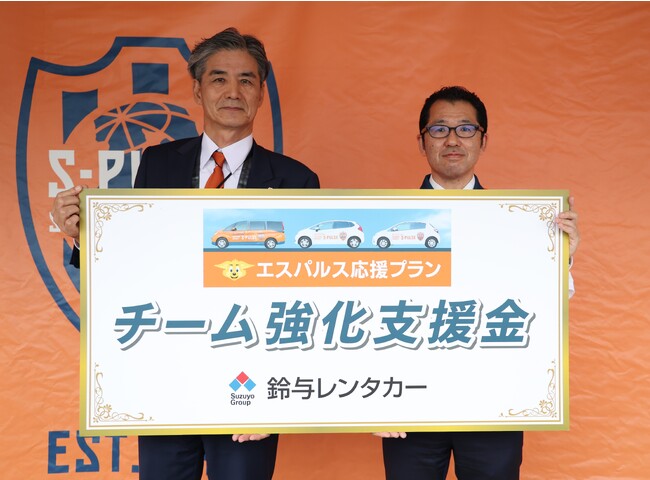 当日は、鈴与レンタカーからエスパルスへ2022年シーズンにおける「エスパルス応援プラン」の売上の一部に、鈴与レンタカーの協力金を加えた合計10万円をチーム強化支援金として、贈呈致しました。