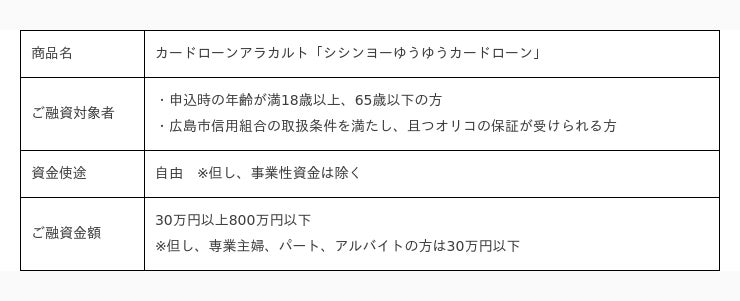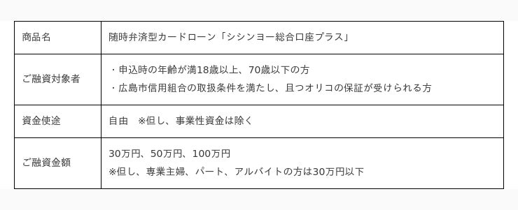 株式会社オリエントコーポレーション(東京都千代田区、代表取締役社長:飯盛 徹夫、以下「オリコ」)は、広島市信用組合(広島県広島市、理事長:山本 明弘)と提携し、随時弁済型カードローン「シシンヨー総合口座プラス」とカードローンアラカルト「シシンヨーゆうゆうカードローン」の取り扱いを2023年10月より開始いたします。
