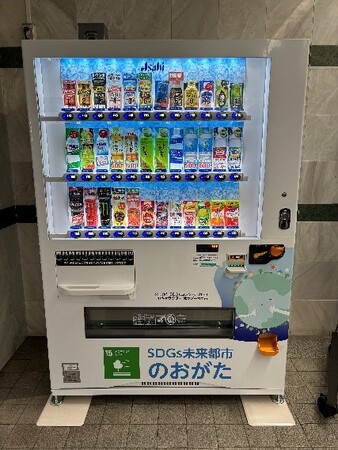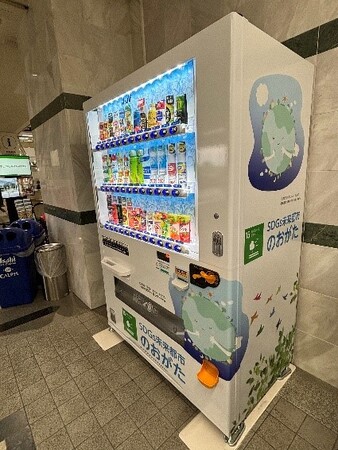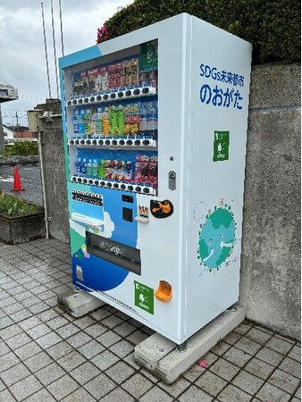 直方市では、令和5年度に開催した「のおがたSDGsコンクール」のキャラクター部門小学生の部において、最優秀賞を獲得したPRキャラクター「はっぴーちゃん」がデザインされた自動販売機(有限会社イイヅカベンディング、九州アサヒ飲料販売株式会社 作成)を設置しました。